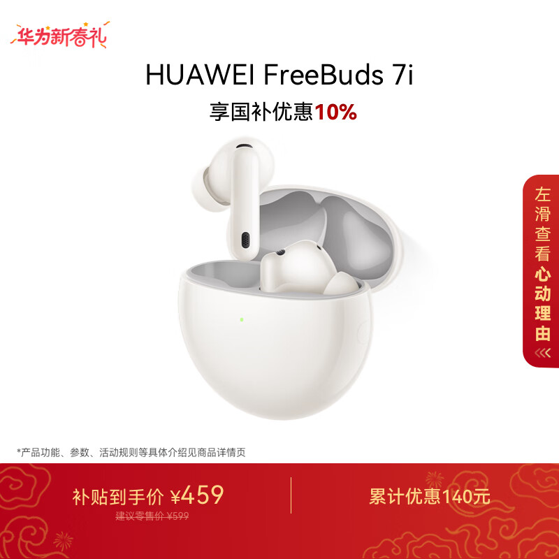 华为FreeBuds 7i 国家补贴 蓝牙降噪耳机 智慧动态降噪4.0/静谧通话/鸿蒙智慧助手 华为耳机 贝母白