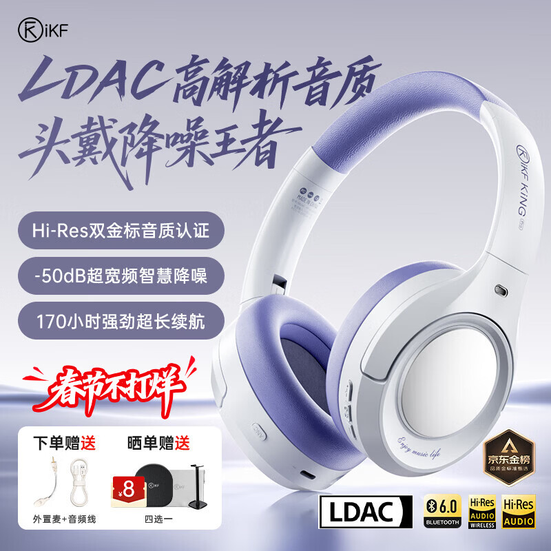 iKF King Pro3.0【双金标LDAC高解析】头戴式蓝牙耳机主动降噪超长续航有线无线电竞游戏低延迟星光紫