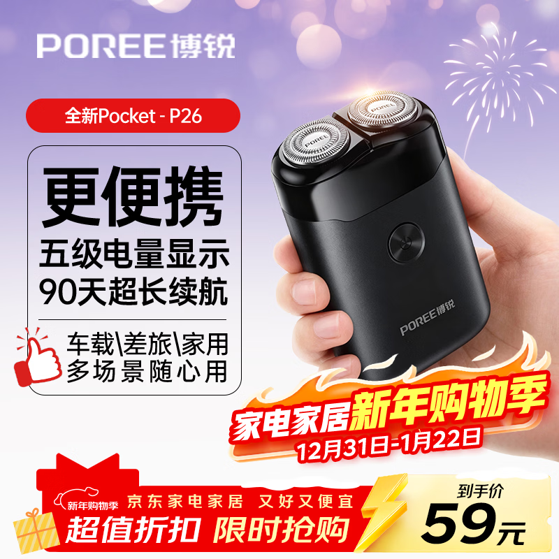 飞科博锐剃须刀电动刮胡刀【京东独家】双刀头旋转式胡须刀迷你便携款刮胡子 新年礼物 Pocket P26
