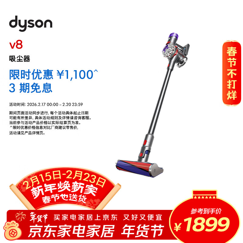 戴森(DYSON)V8无绳吸尘器【升级款】手持无线吸尘器 除螨 宠物 家庭适用