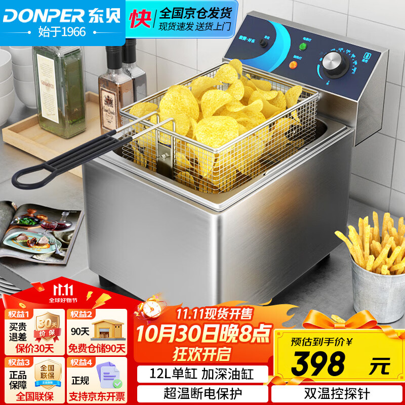 东贝(Donper)电炸炉油炸锅商用小型单缸双缸12升电炸锅炸串炸鸡翅薯条油条炸机EF-12L