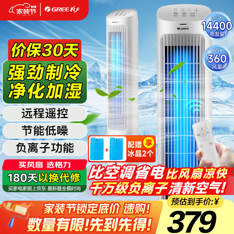 格力(GREE)【强力制冷】家用遥控冷风空调扇制冷风扇负离子净化加湿降温落地冷风机单冷气扇塔扇 KS-04S63Dg