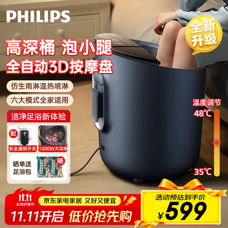 飞利浦(PHILIPS)泡脚桶 泡脚盆加热全自动按摩足浴盆智能恒温加热洗脚盆 3302F 生日礼物送父母长辈礼品