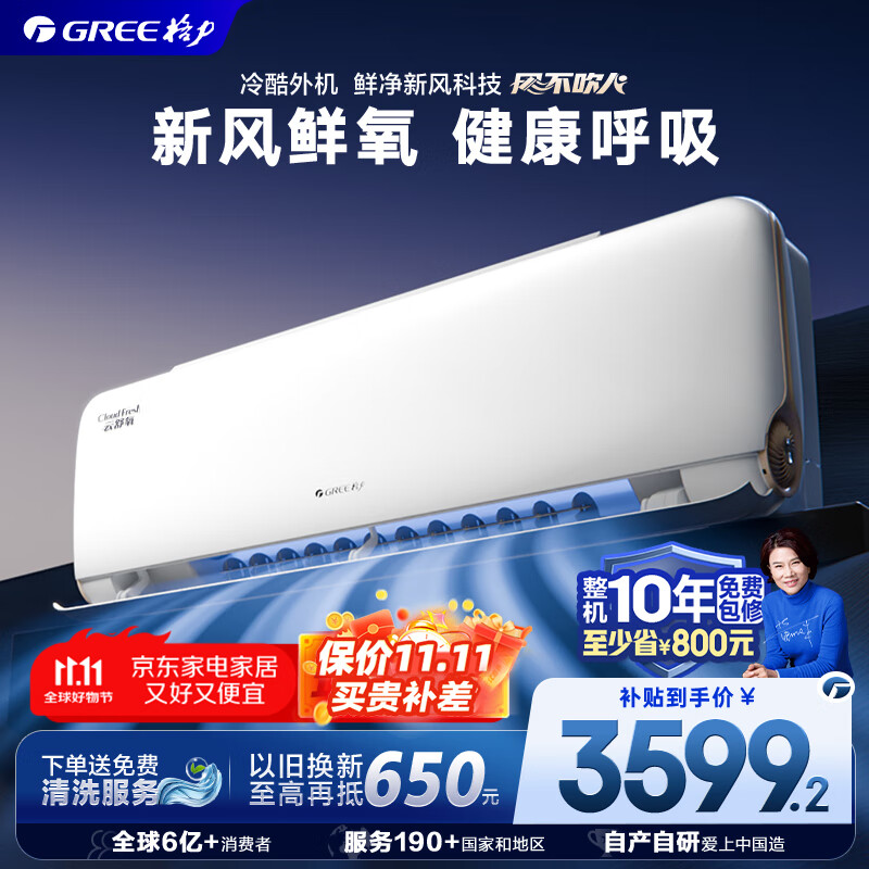 格力(GREE)新风空调 1.5匹云舒氧1级能效 壁挂式卧室挂机风不吹人健康风省电空调KFR-35GW/NhHf1BAj 国家补贴