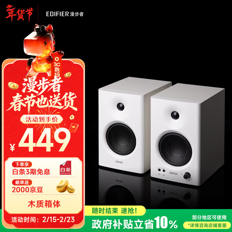 漫步者(EDIFIER)MR4 有源监听2.0音箱 高保真HIFI音质 多媒体电脑音响 桌面音响 电视音响 白色 新年礼物