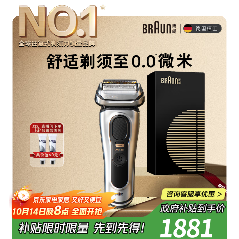 博朗9系巅峰版电动剃须刀整机德国进口往复式剃须刀刮胡刀送老公男朋友生日礼物 男