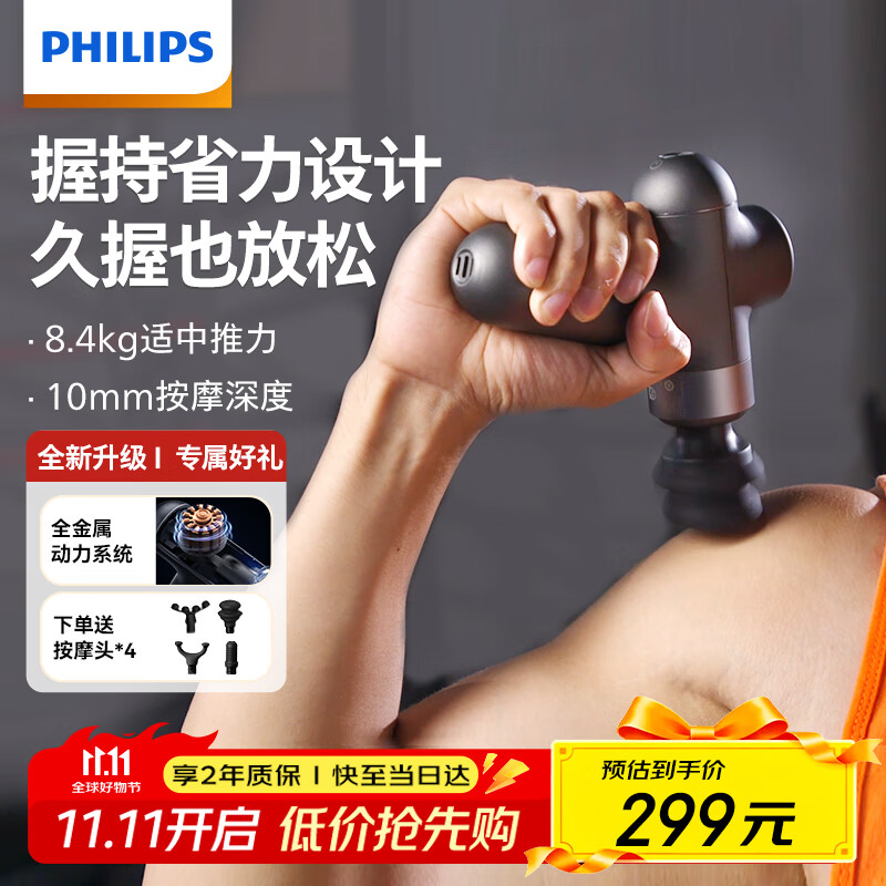 飞利浦(PHILIPS)筋膜枪小钢炮按摩仪专业级家用颈膜枪健身肌肉背腿部深层按摩器3107G 生日礼物男女友
