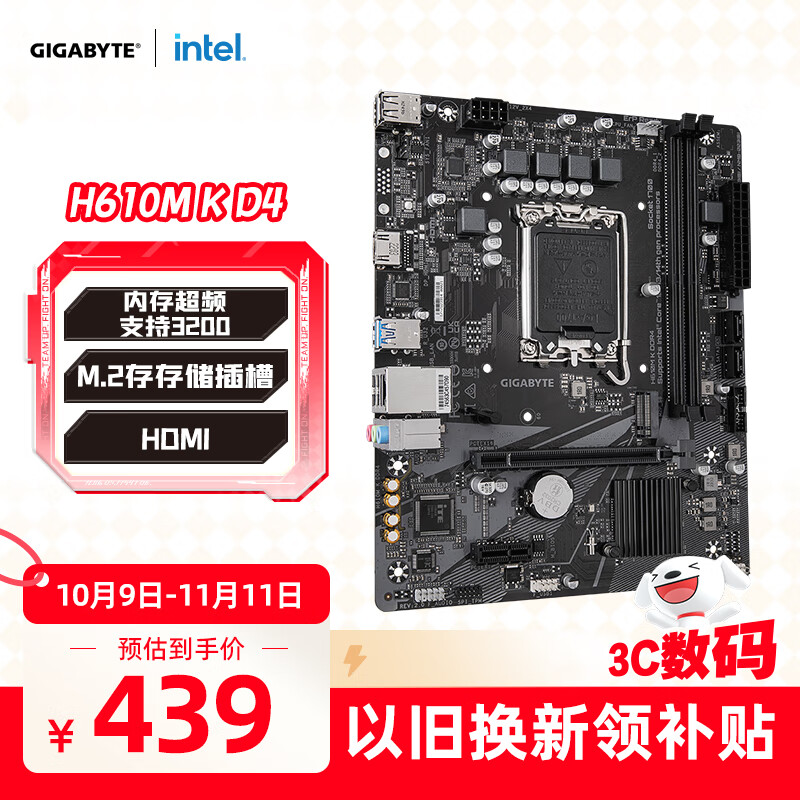 技嘉(GIGABYTE)H610M K DDR4主板支持CPU12代酷睿12400F(Intel H610/LGA 1700)