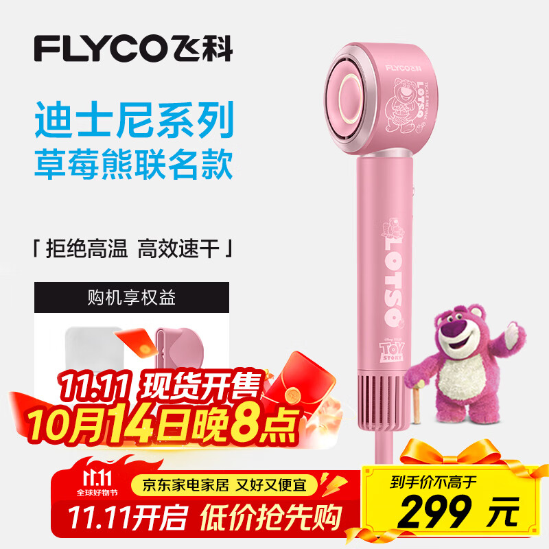 飞科(FLYCO)高速电吹风机家用宿舍送女生节日礼物大风力负离子护发恒温速干出行必备草莓熊联名款FH6372