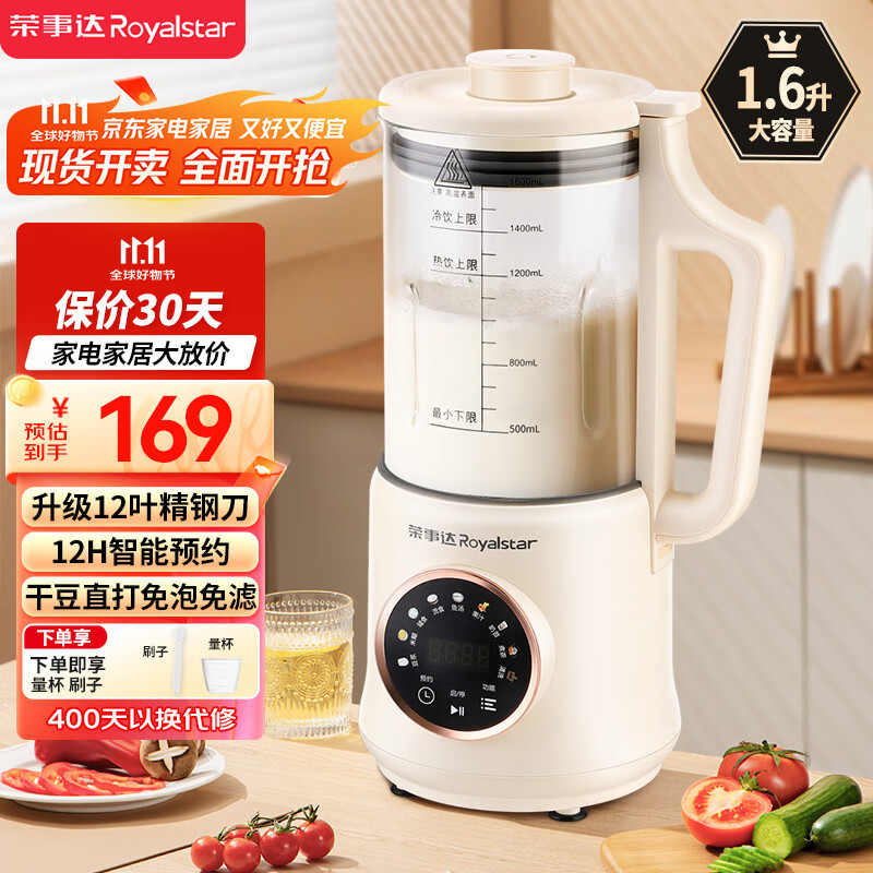 荣事达(Royalstar)破壁机家用豆浆机1.6L容量小型多功能免滤宝宝婴儿料理辅食机预约早餐榨汁机RZ-625B