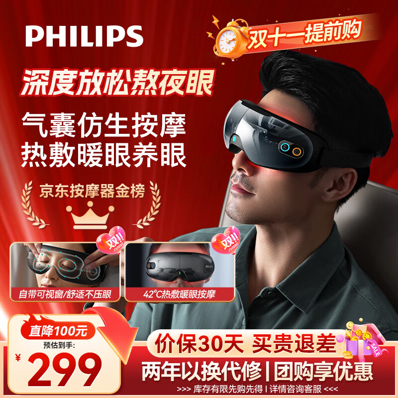 飞利浦(PHILIPS)眼部按摩仪护眼仪 热敷眼罩全包裹仿生气囊眼睛按摩器舒缓眼疲劳神器蓝牙送男女友父母礼物3203E