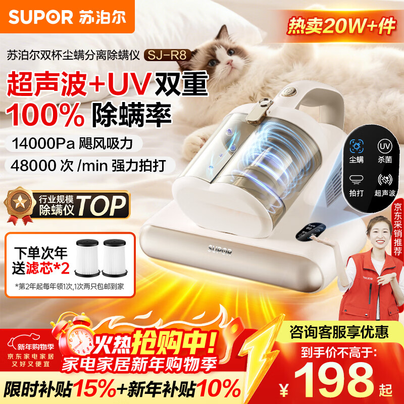 苏泊尔(SUPOR)除螨仪国家补贴床宝双杯尘螨分离家用去螨虫强力深层次除螨紫外线杀菌SJ-R8