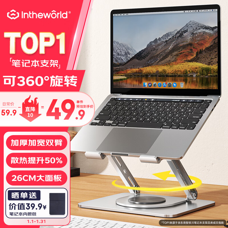 极川 笔记本电脑支架散热器平板支架可360°旋转升降悬空桌面立式增高托架子适用苹果Macbook华为联想
