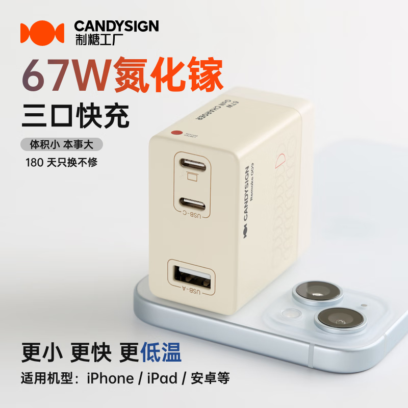 CANDYSIGN【iPhone17 上新】制糖工厂硬糖67W充电器适用iPad苹果iPhone17华为安卓氮化镓pd快充笔记本充电头
