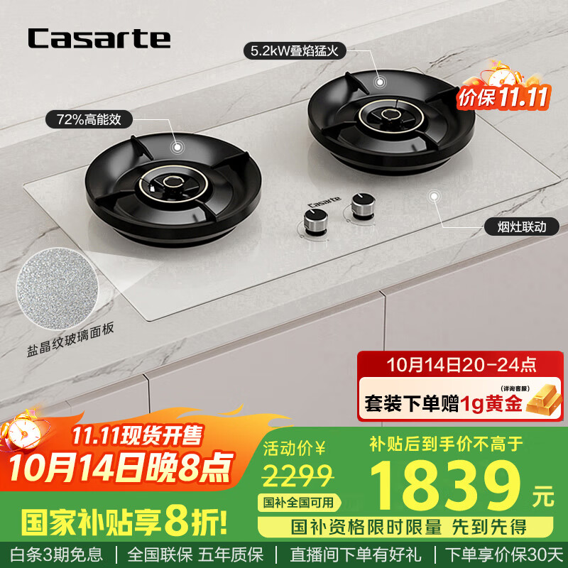 卡萨帝(Casarte)小炫风燃气灶天然气 揽光灶具白色百搭 5.2kw大火力 72%高热效 叠焰猛火 国家补贴灶台CDZ5U9