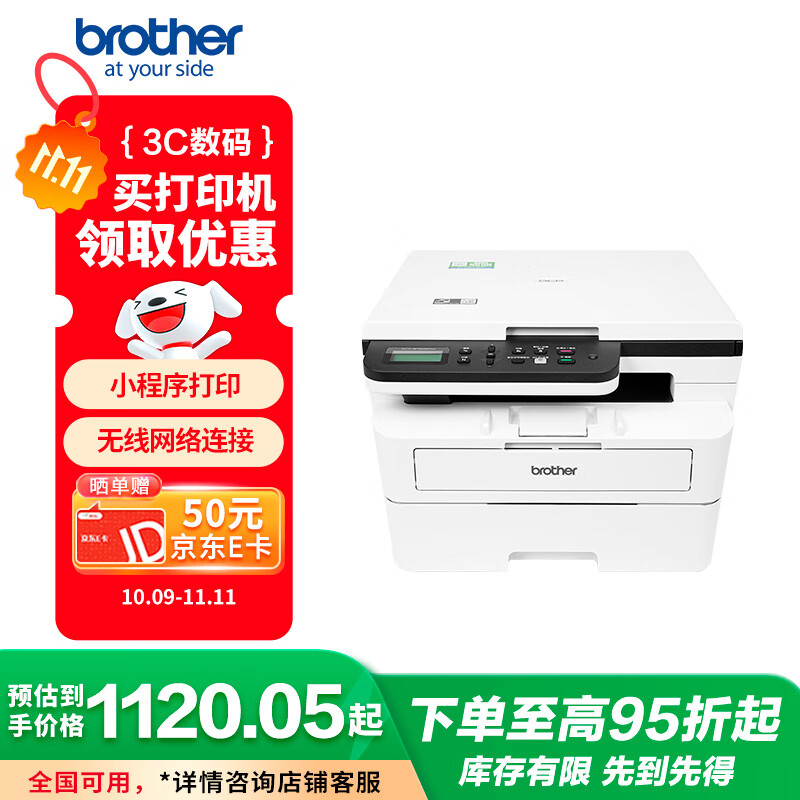 兄弟(brother) DCP-B7548W 家用黑白激光一体机( 三合一商务办公 5G无线 远程打印 可视化液晶屏)