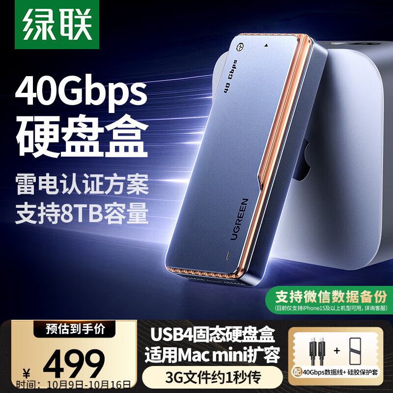 绿联USB4硬盘盒40Gbps 兼容雷电雷雳3/4 M.2 NVMe移动硬盘盒 适用苹果Mac mini电脑笔记本扩展SSD固态