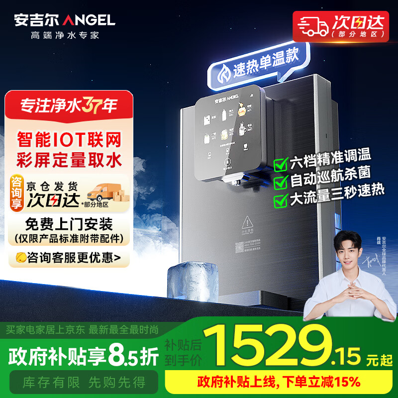 安吉尔即热式直饮机家用超薄管线机壁挂式加热净饮机一体机净水机智能触控国家补贴Y3511BK-G