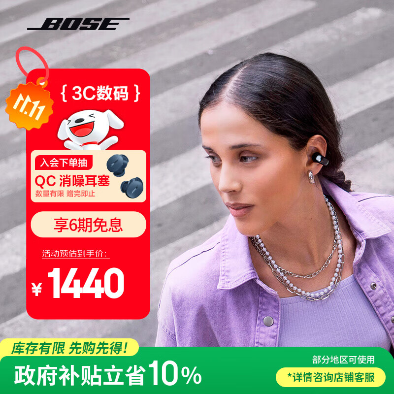 Bose 【政府补贴】Ultra 开放式耳机-经典黑 小耳环耳夹 不入耳开放式无线蓝牙运动耳机 双11购物推荐