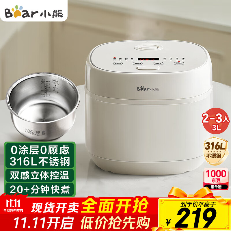 小熊(Bear)电饭煲2-3人 0涂层电饭锅 316L不锈钢内胆 家用智能微压柴火饭杂粮饭多功能3L DFB-E30V5
