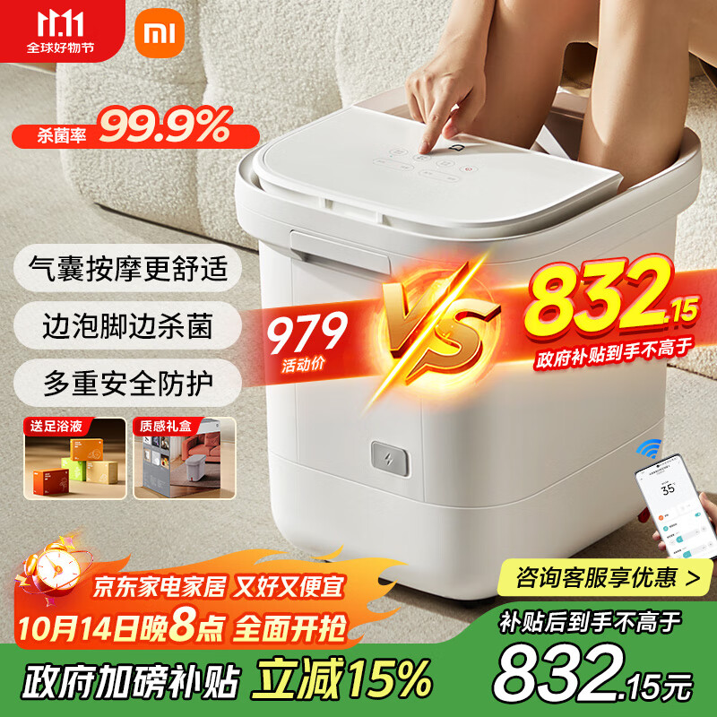 米家小米泡脚桶全自动恒温加热气囊包裹按摩足浴盆智能杀菌洗脚桶过小腿 生日实用礼物 送父母长辈