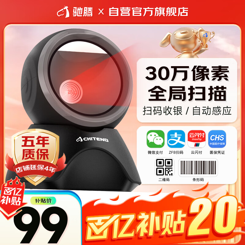 驰腾一二维码扫描平台 收银支付商品条码扫码枪墩 餐饮商超便利店零售 医保药品追溯码扫描器盒子T585L