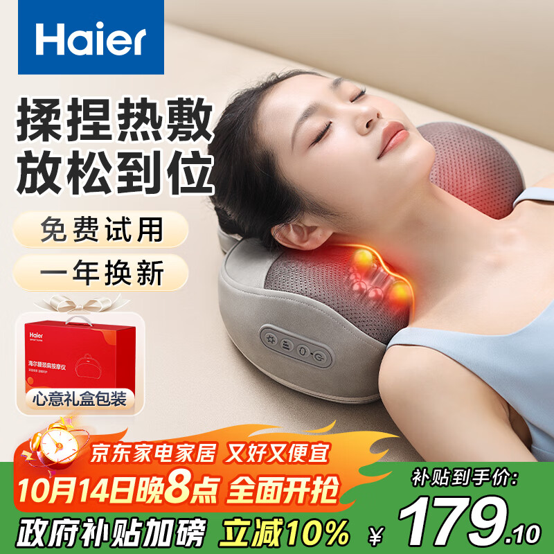 海尔(Haier)颈椎按摩器腰部按摩仪按摩枕头颈部肩颈背部按摩靠垫腿足底全身生日节日礼物送女友HHZ-Y602Z-Pro