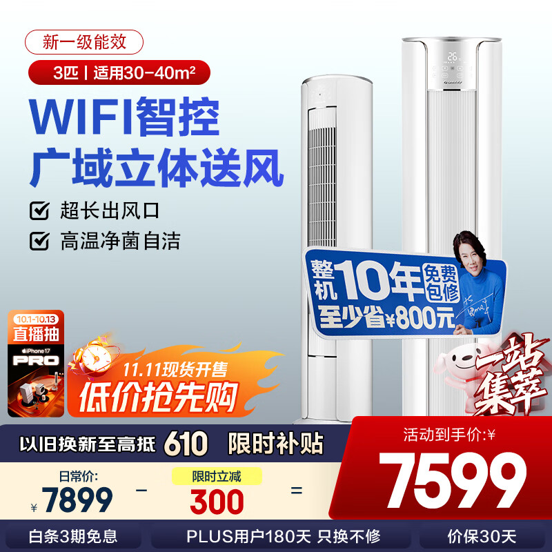格力(GREE)空调3匹i尚一级变频冷暖新一代冷酷外机立柜式空调柜机KFR-72LW/(72555)FNhAa-B1(WIFI)政府补贴