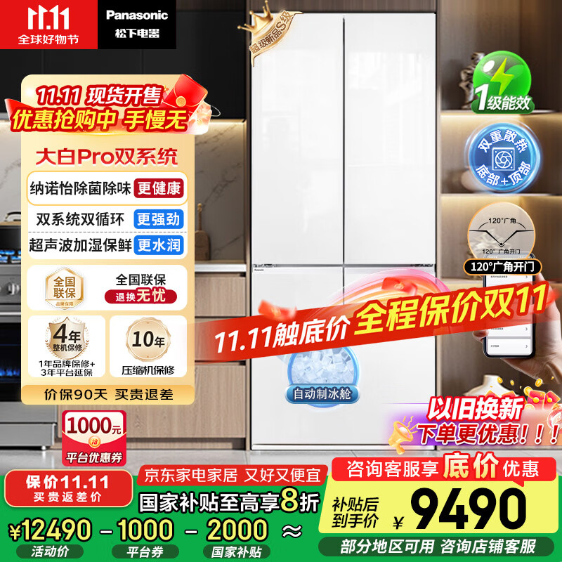 松下(Panasonic)【国家补贴20%】大白PRO冰箱法式多门460超薄零嵌入式双系统电冰箱风冷无霜一级能效NR-EW46BXB-W