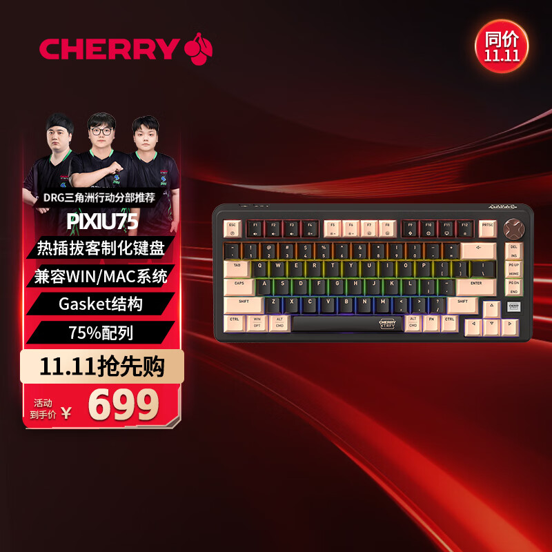 CHERRY樱桃PIXIU75客制化键盘 Gasket 2.4G蓝牙三模无线RGB 热插拔 游戏键盘 兼容WIN/MAC 黑色红轴
