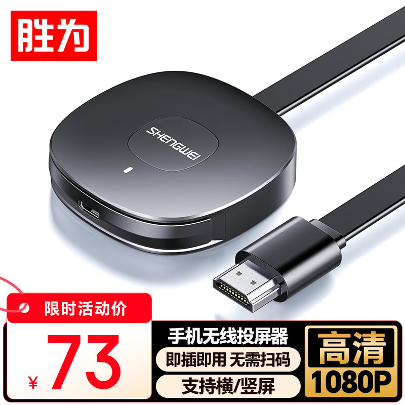 胜为手机无线投屏器 5G横竖屏音视频同屏万能神器 支持苹果安卓手机笔记本电脑连接电视 DHD0010G