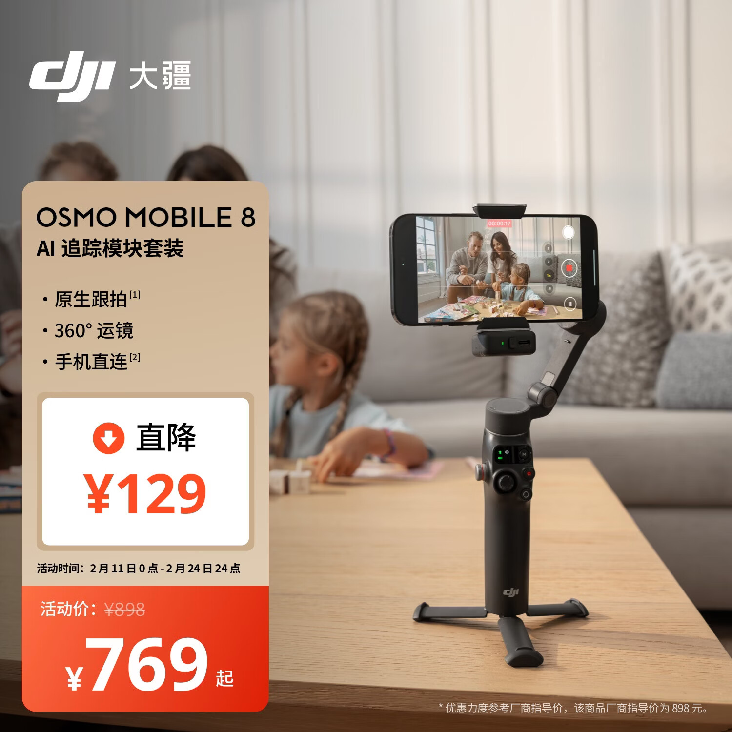 大疆DJI Osmo Mobile 8 手机稳定器手持云台OM8 360度跟拍防抖自拍杆折叠便携直播vlog神器
