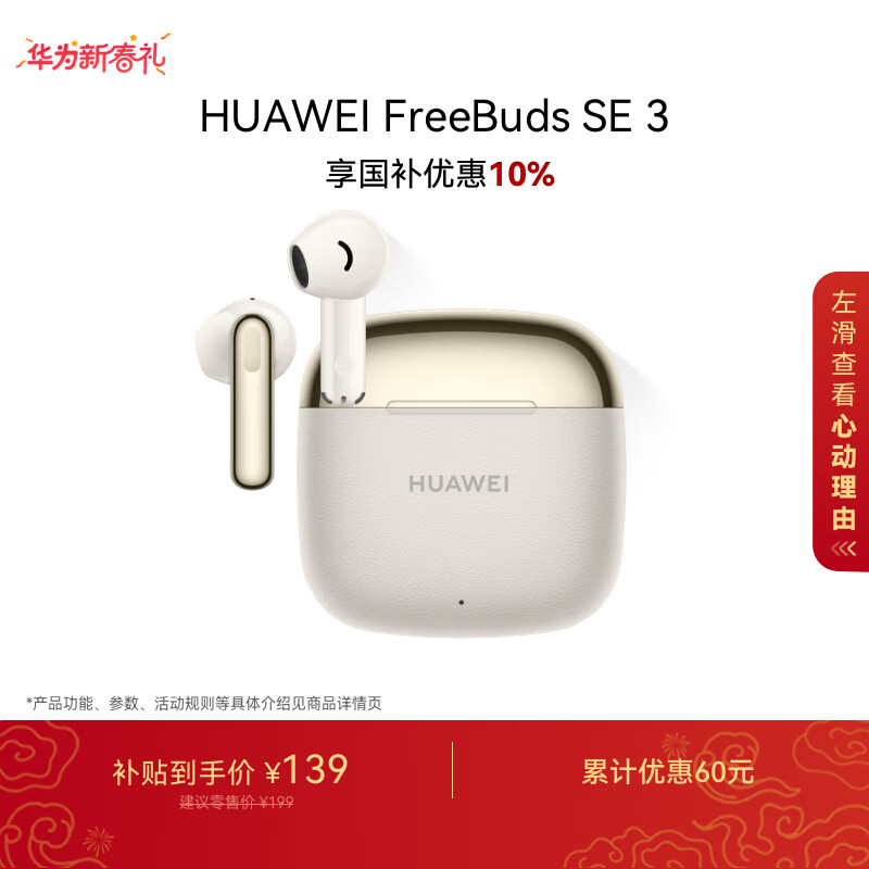 华为FreeBuds SE 3 无线蓝牙耳机超长续航42小时快速充电 流光金