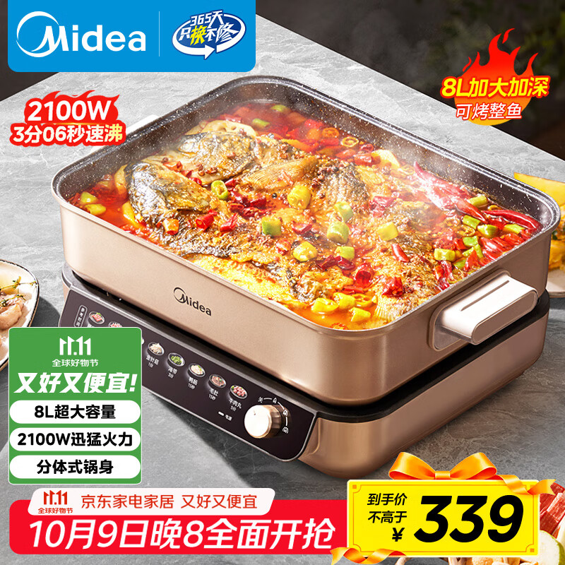 美的(Midea)电火锅 火锅专用锅分体式多功能锅电煮锅涮肉锅火锅锅速沸8L家用多用途锅HGS382702