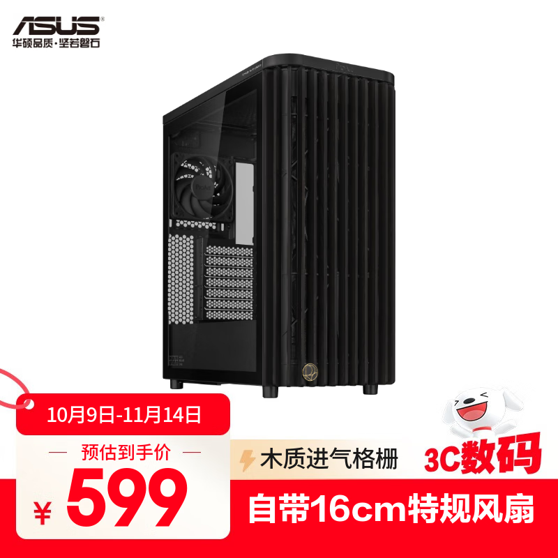 华硕ProArt创艺国度PA401木艺版机箱 强力散热/木艺前进气格栅/免工具拆装/电源按键锁/PWM一键设置