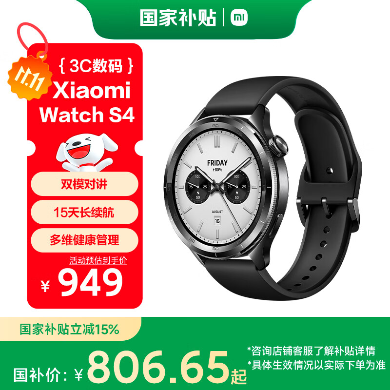 小米(MI)Xiaomi Watch S4 黑色 国家补贴 小米汽车su7钥匙 澎湃OS 2 心率血氧监测 小米手表s4 男表女表