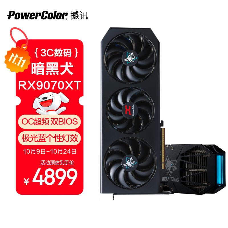 撼讯AMD RADEON RX 9070XT 暗黑犬16GB电竞独立显卡全新OC超频台式机游戏人工智能高性能