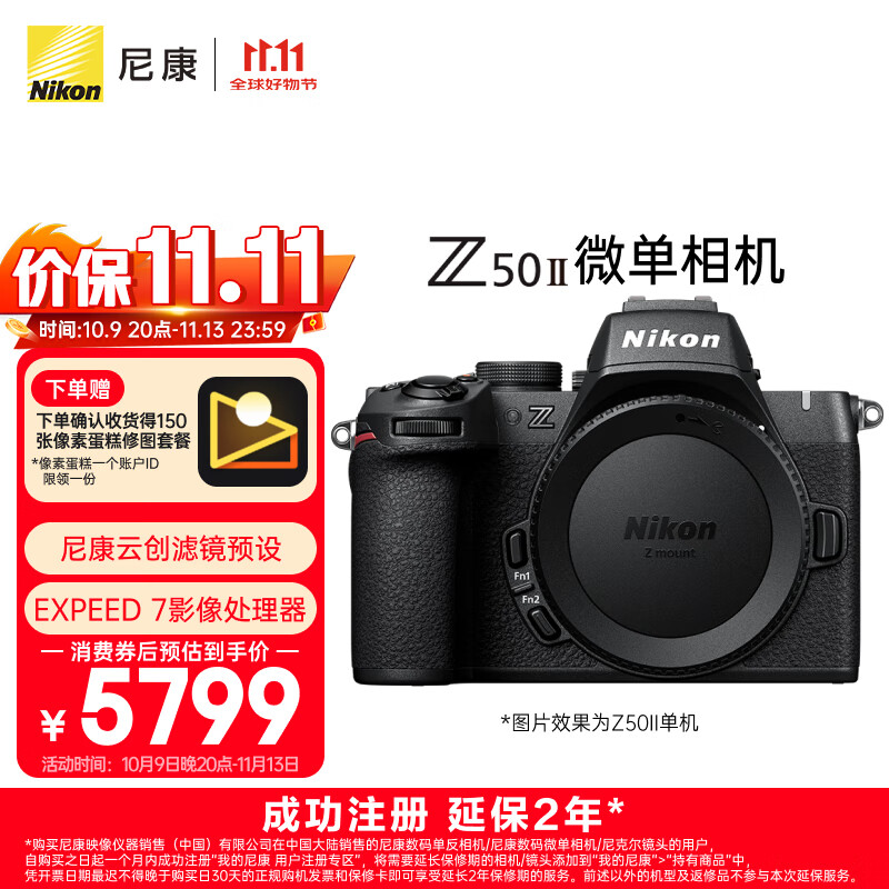 尼康(Nikon)【价保11.11】Z50II(Z50ii/ Z502 / Z50二代 ) 入门级微单相机 轻便 Vlog 滤镜直出 街拍 出游