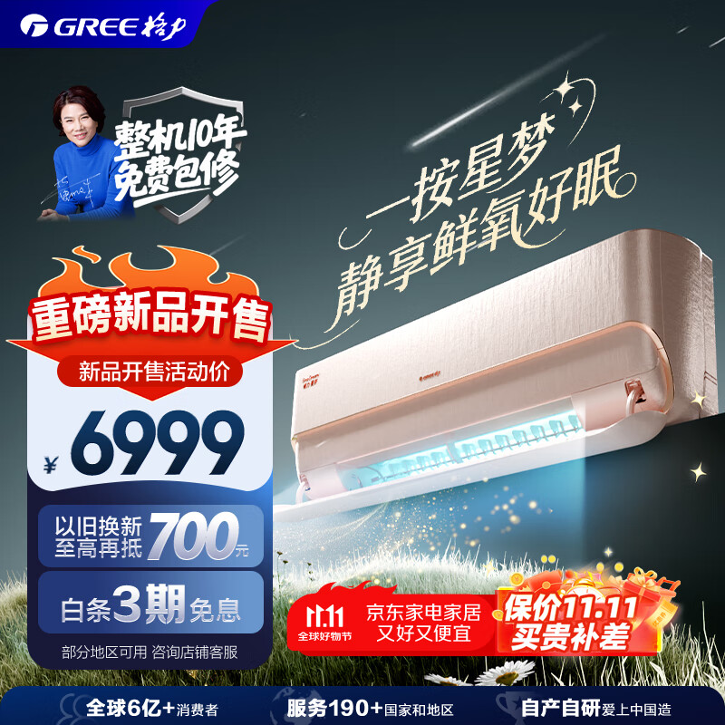 格力2匹 星梦1级能效变频 壁挂式新风挂机 防直吹 健康风 省电空调 KFR-46GW/(46518)FNhAa-B1(WIFI)