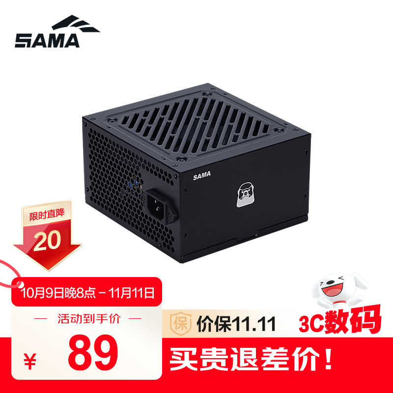 先马(SAMA)平头哥450 额定300W 台式主机箱电脑电源 主动PFC/单路+12V/智能温控/12cm风扇/长线材/安全稳定