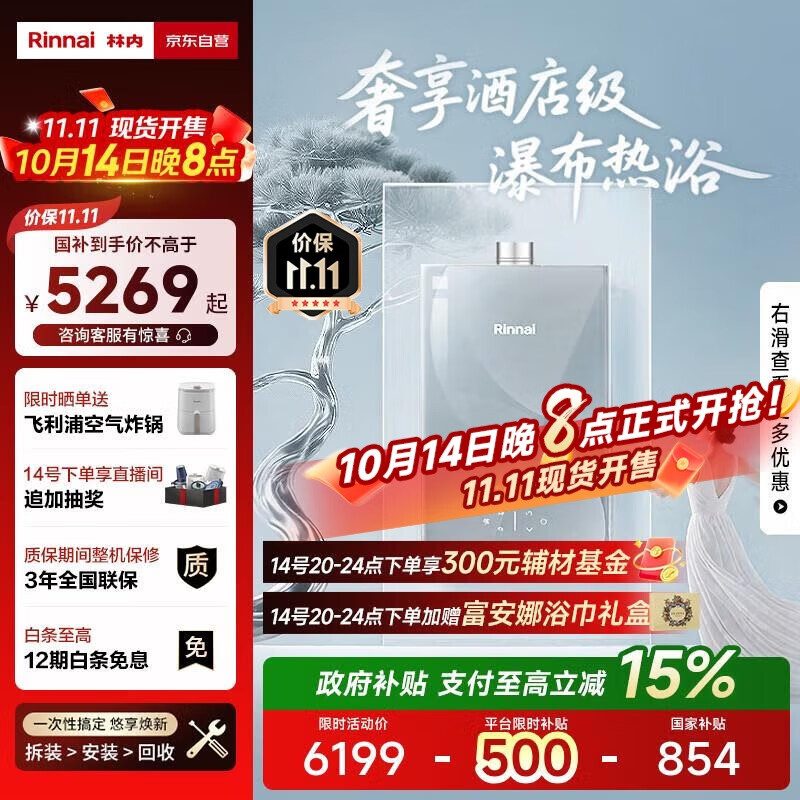 林内(Rinnai)【大师系列】20L大升数燃气热水器 全量水伺服恒温 大水量热水器 0.5℃调温 20GD73(JSQ40-GD73)