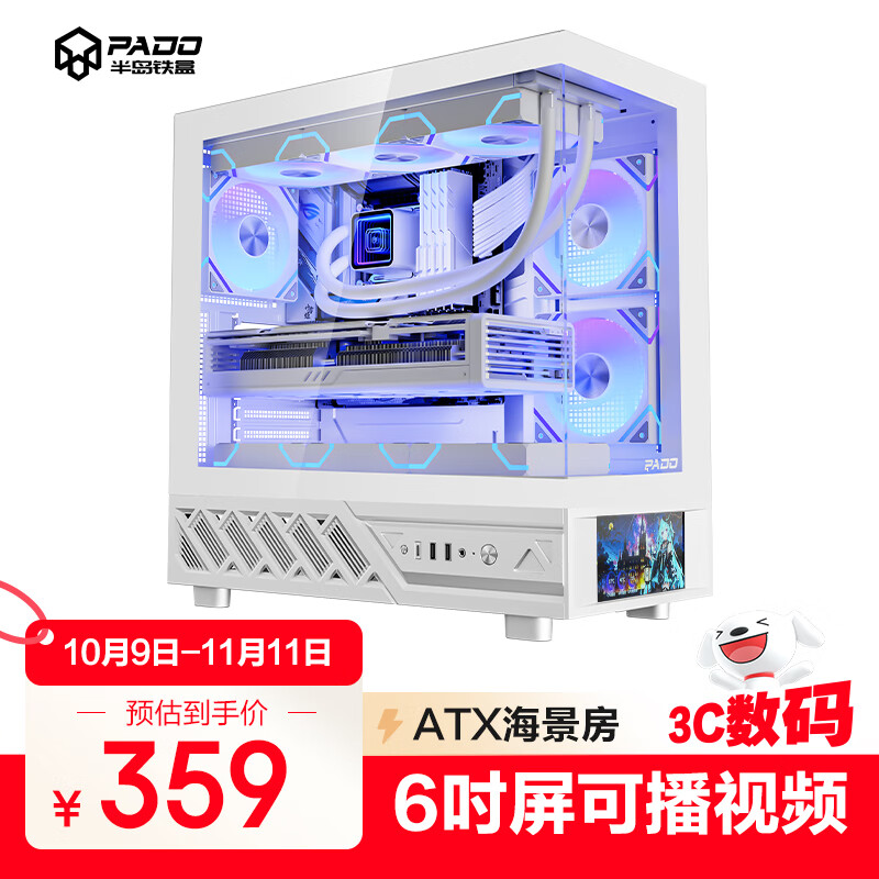半岛铁盒(PADO)应龙沧溟 屏显版 白色 ATX 游戏电脑台式机箱/支持360水冷/带6吋LCD副屏/270°海景房/5090显卡