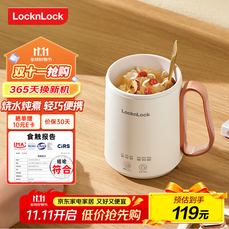 乐扣乐扣 养生杯烧水杯 迷你养生壶牛奶神器热奶杯电煮杯电炖杯电热水杯旅行加热水杯户外电热水杯 0.35L -陶瓷覆层