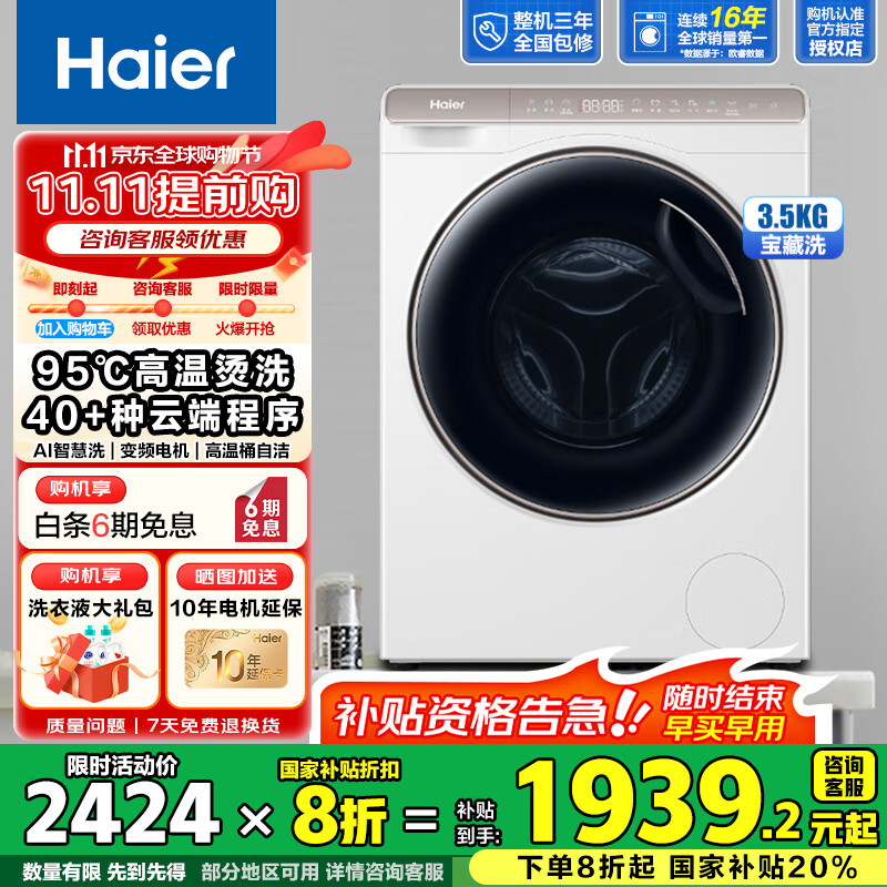 海尔(Haier)迷你滚筒洗衣机3.5公斤超薄全嵌家用小型母婴儿童全自动变频洗衣机除菌螨内衣洗衣机 【海尔上新推荐】3.5KG迷你滚筒+智联+健康除菌