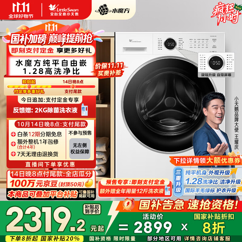 小天鹅(LittleSwan)滚筒洗衣机全自动家用 白色款 水魔方 TG10V628PLUSW 10公斤 家电国家补贴20% 以旧换新 一级能效