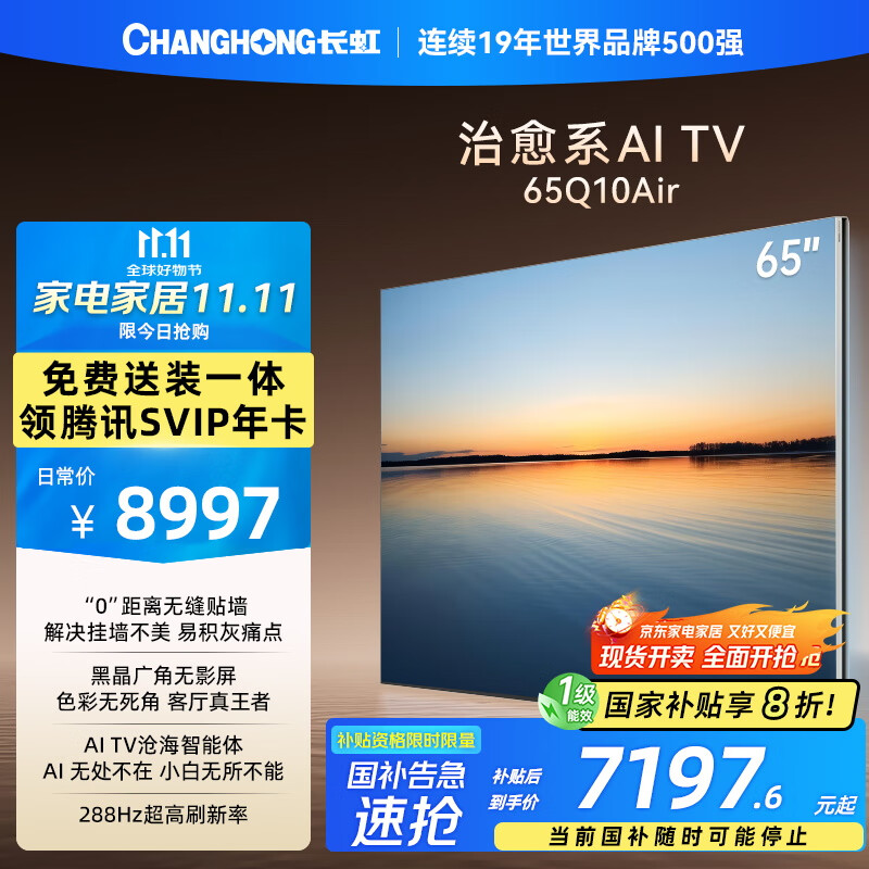 长虹治愈系AI TV追光系列65Q10Air 高定黑晶广角无影屏氛围大师 AI光翼壁画电视机以旧换新国家补贴