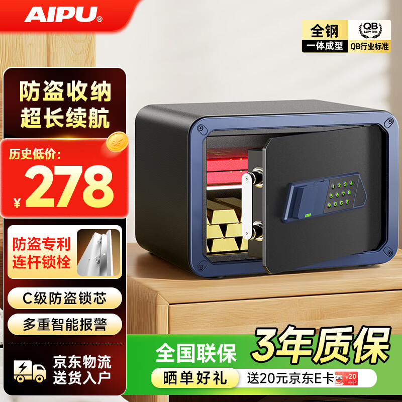 艾谱(AIPU)保险柜家用2025年新款电子密码小型办公防盗保险箱家用衣柜隐藏式可入墙防搬走保管箱京尚高25CM黑