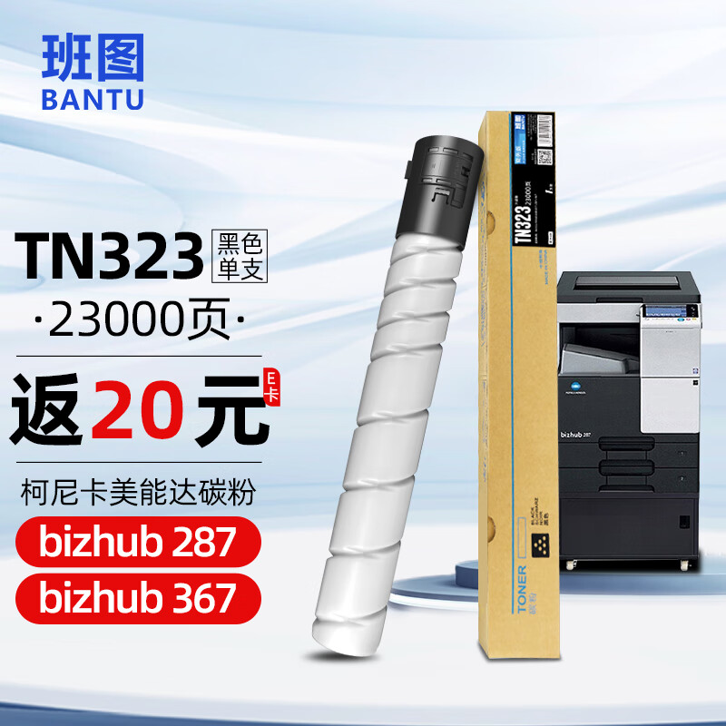 班图适用柯尼卡美能达287碳粉367粉盒tn323墨粉227 7528复印机打印机墨粉盒toner黑色h大容量