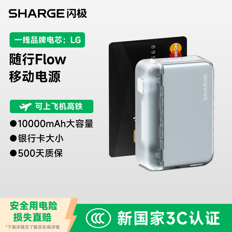 闪极(Sharge)【新3C认证】随行10000毫安充电宝PD20W快充便携小巧可上飞机移动电源适用苹果17iPhone16华为小米