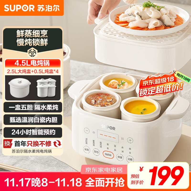 苏泊尔(SUPOR)电炖盅电炖锅隔水炖煮家用煲汤锅燕窝炖盅4.5L炖汤锅蒸炖一体多功能锅DZ25FC873